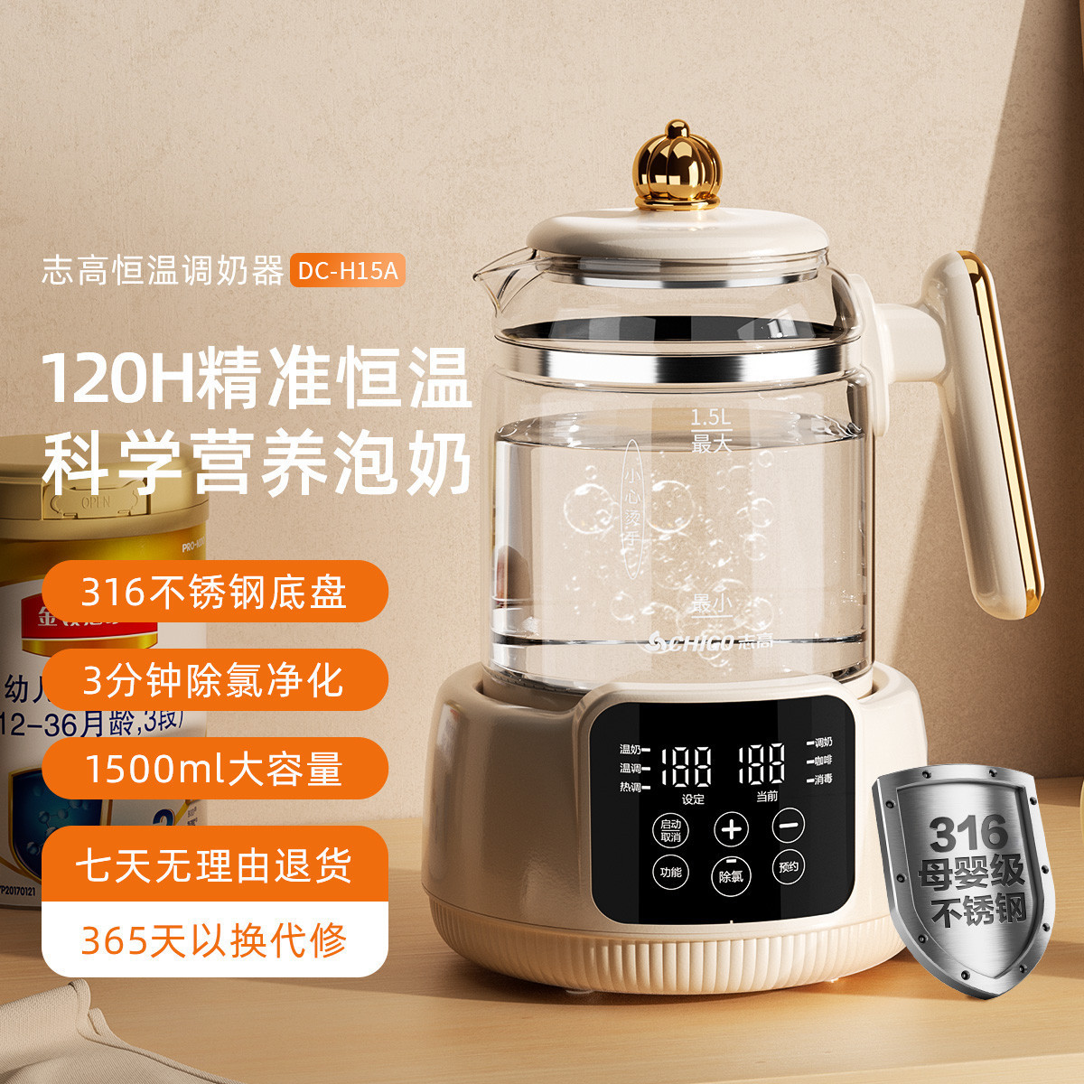 志高のDC-H15Aの恒温の水筒の乳児のミルクを調節する器の温かい乳のミルクを温める器の家庭用の粉ミルクの電気のお湯