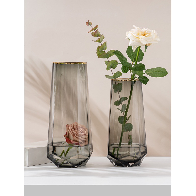 ガラスの花瓶が輝くシリーズの同じ生け花の花瓶の置物の燭台ins風の装飾品の客間の寝室の食卓