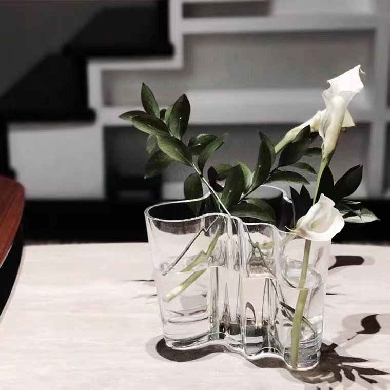 スペイン風曲線創意ガラス花瓶透明大客間生け花軽豪華現代シンプル装飾置物