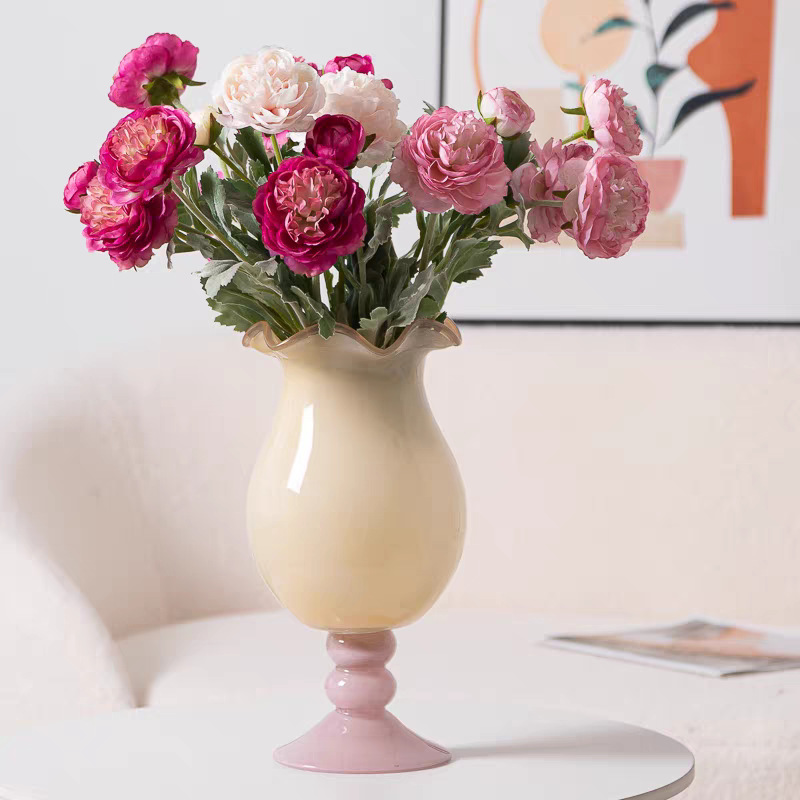 モダンシンプル高颜値収腰ガラス花瓶キンポウゲチューリップシンプルins風水養客間置物
