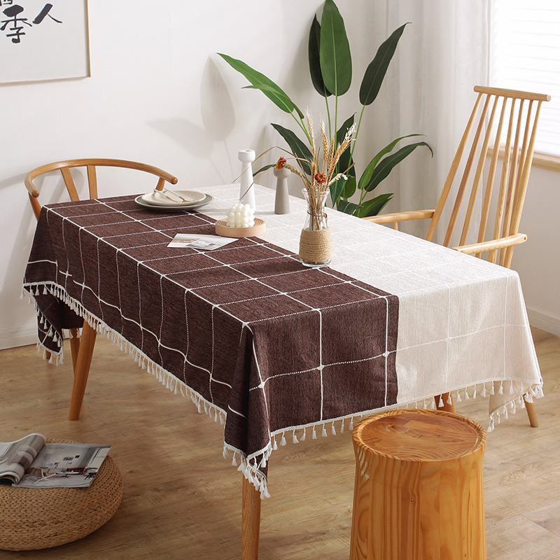 横岡北欧ins方格子テーブルクロス流蘇は綿麻茶のテーブルマット布芸テーブルのテーブルクロスの現物卸売りをまねている