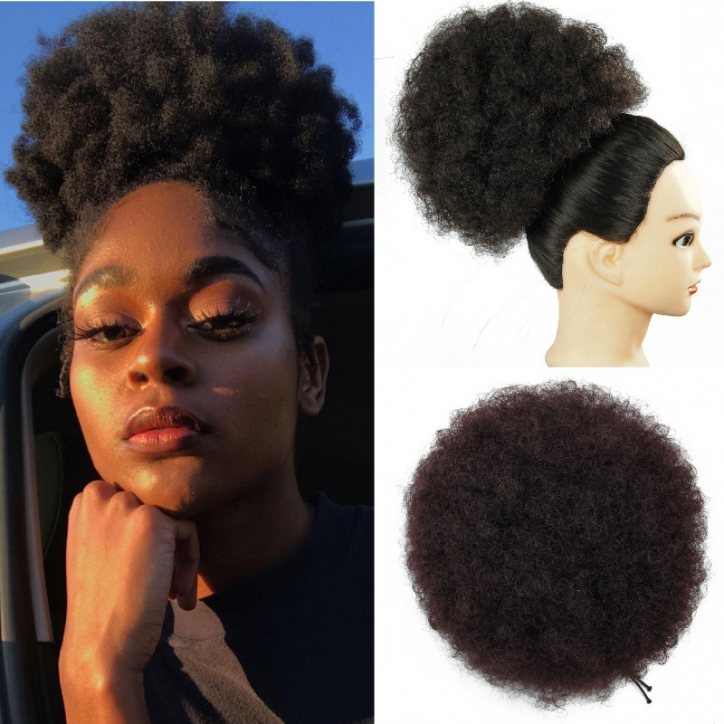 アフロおだんごヘアパフクリップポニーテール変態カーリーウィッグアフリカウィッグ