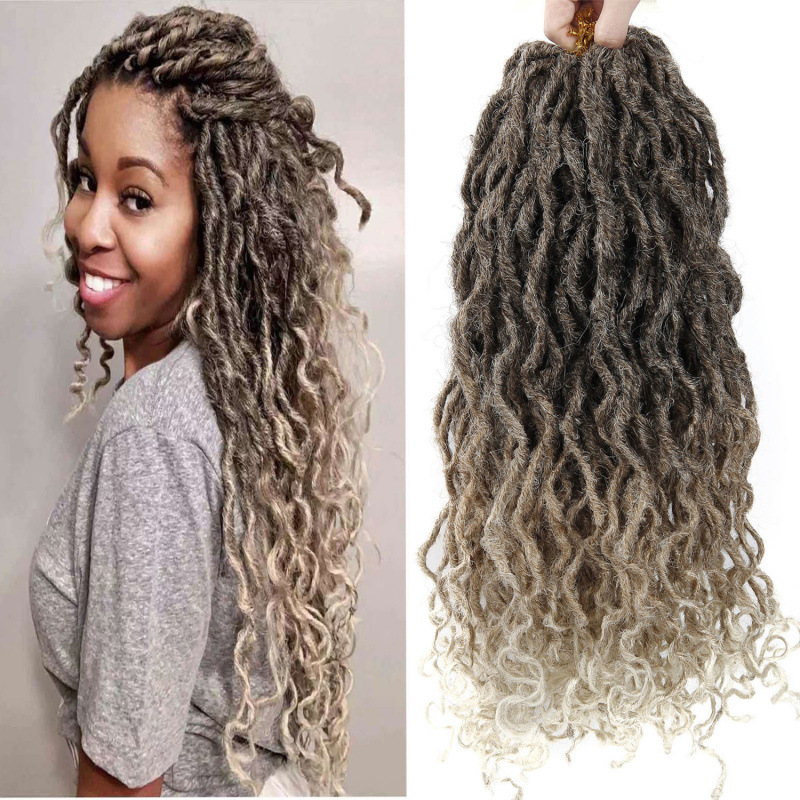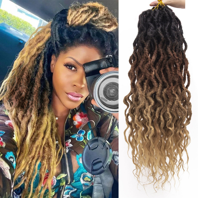 ヨーロッパとアメリカのウィッグ フェイク ロックス かぎ針編み三つ編みヘア ナチュラル カーリー ドレッドロックス