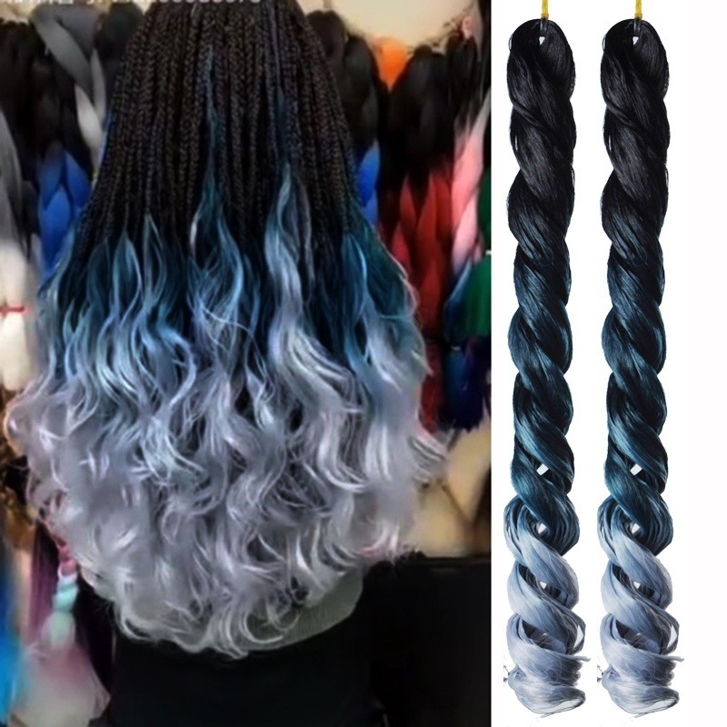 ヨーロッパとアメリカの新しいスタイルの女性用アンティークウィッグ、グラデーションカラーのウェーブ型ヒップホップ個性のドレッドヘア、高温シルク編み込みヘア、大きな三つ編み