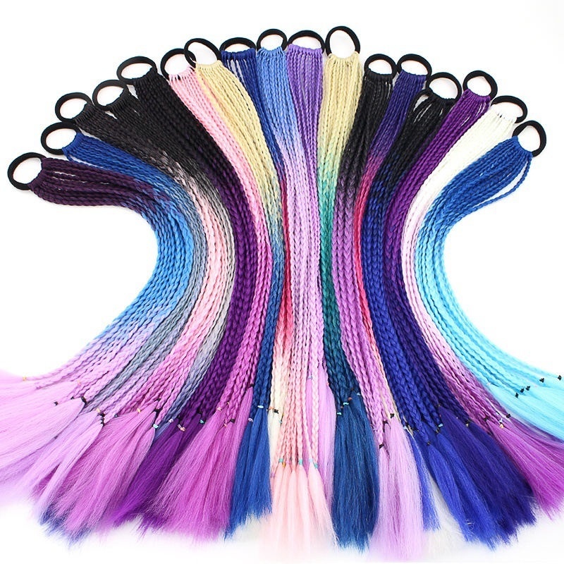 ウィッグポニーテール、三つ編み、ストラップオンドレッドポニーテール、エスニックスタイルのカラフルな三つ編み、グラデーションアフリカンドレッド