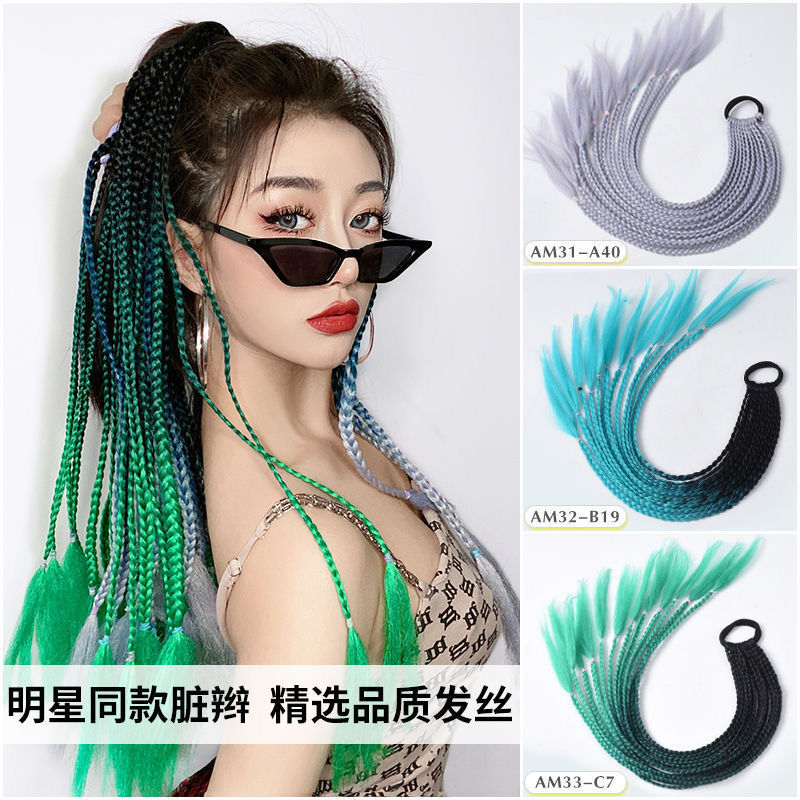 ドレッドヘア、甘くてクールなツイスト三つ編み、ボクシング三つ編み、カラフルなポニーテール、ストリートダンス、ヒップホップ、エスニックスタイルのウィッグ三つ編み
