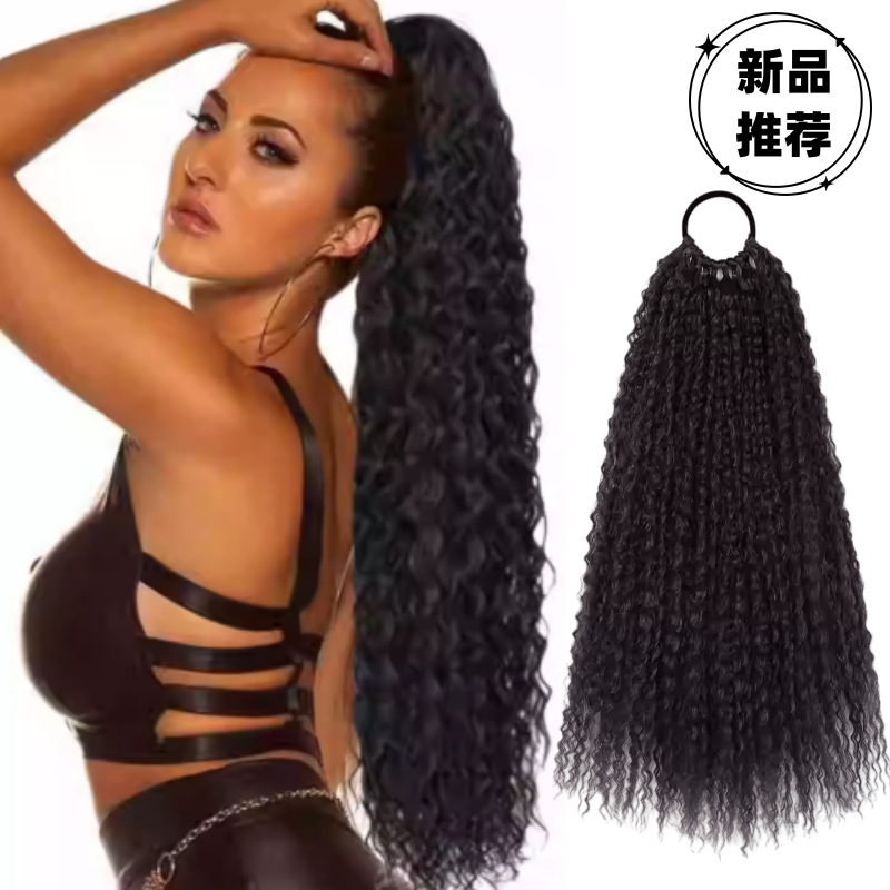 ヨーロッパとアメリカの女性用ポニーテールウィッグ、ラテンアメリカの巻き毛、ふわふわコーンパーマ、水波紋、自然なシミュレーションロングヘア、ハイポニーテール