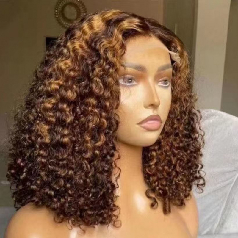 アフロショートヘアフロントレース小巻きかつら新しいかつら女性のグラデーションカラーショート巻き毛化学繊維ヘアセット