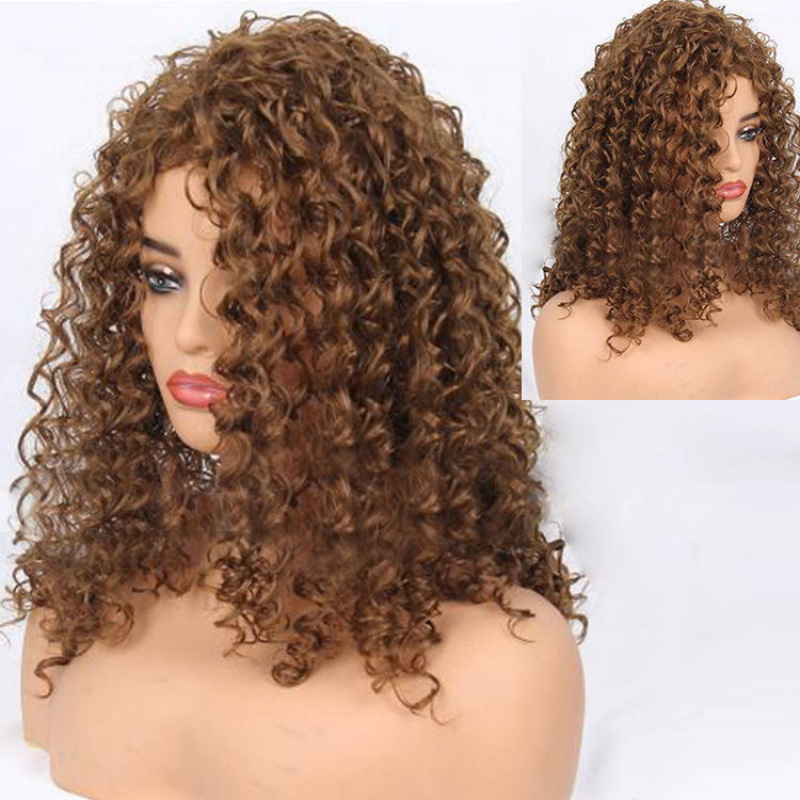 ヨーロッパとアメリカのヘアウィッグ人気のミディアムロングカーリーアフリカの小さなカーリーウィッグ女性用ブラックバーガンディマルチカラーカーリーヘアメーカー直販