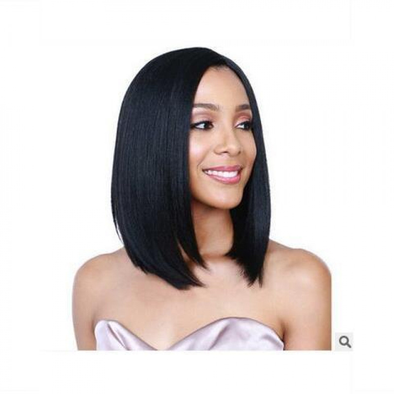 新しいミッドレングスウィッグ黒中間分けボボ女性のショートストレートヘア高温シルクファッション顔整形リアルな女性のかつらセット