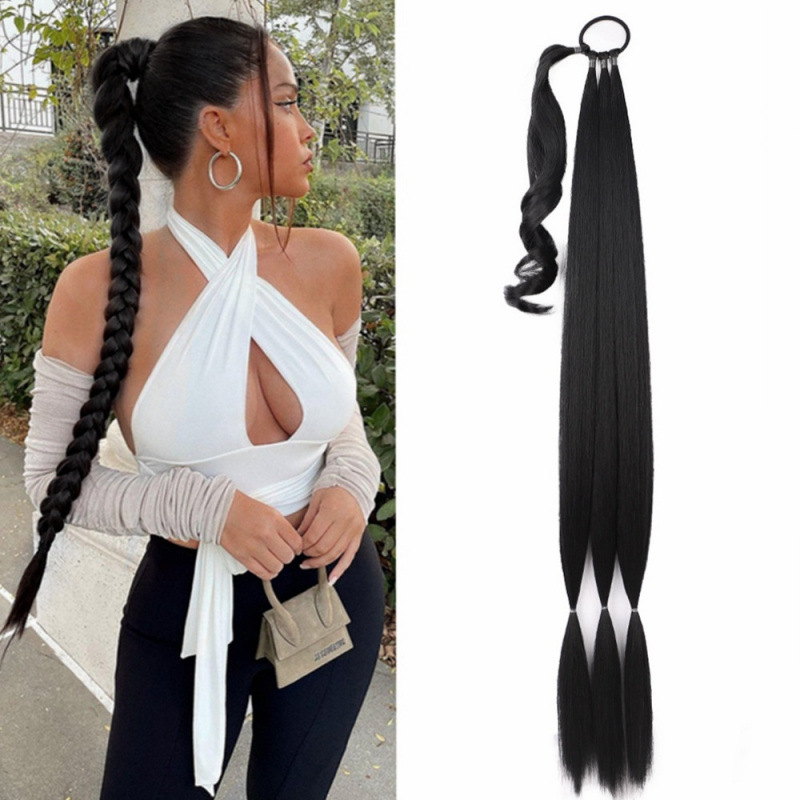 ヨーロッパとアメリカの女性用ロングヘアウィッグ、三つ編みポニーテール、ファッショナブルな化学繊維ロングヘアウィッグ、三つ編みハイタイフェイクポニーテール