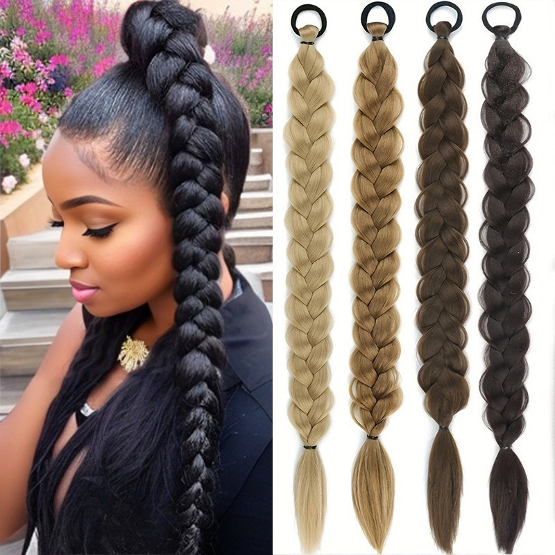 偽三つ編み新しいファッション化学繊維かつら女性のための長い三つ編みヘアエクステンションヘアバンドスタイルヘアエクステンション三つ編みかつらポニーテール