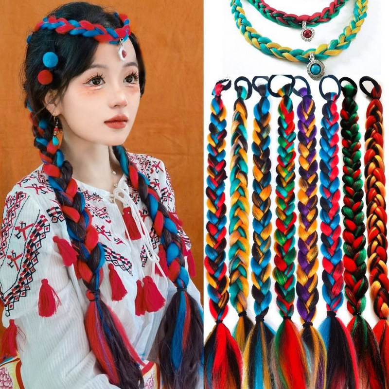 チベットの頭飾りウィッグポニーテールチベット超ロングカラフルな編み込みチベット服エスニックスタイルインターネットセレブヘアアクセサリー