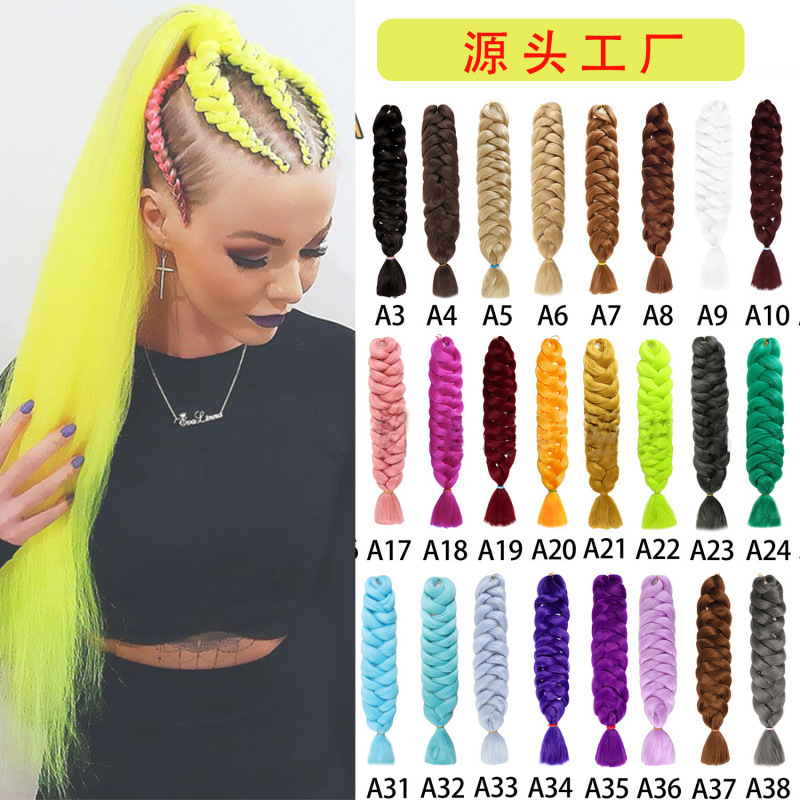 ホット販売アフリカのドレッドヘアウィッグヨーロッパとアメリカのカラフルな編み込みヘア素材単色大きな三つ編みネパールツイスト三つ編み