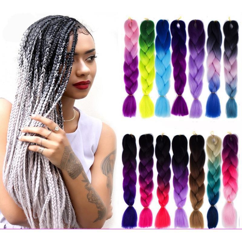 アフリカの大きな三つ編みウィッグ、カラフルな三つ編みヘアロープ、グラデーションファイバーの大きな三つ編み、レゲエヒップホップの三つ編み