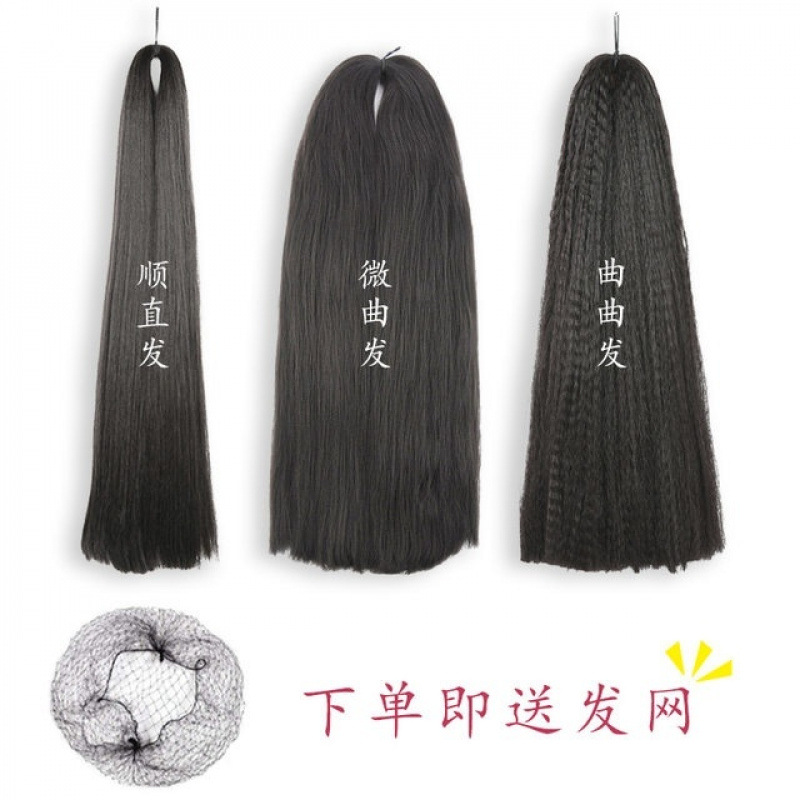 コスチュームウィッグ、カーリーヘア、少しカーリーヘア、ストレートヘア、手作りDIY加工おだんごヘア