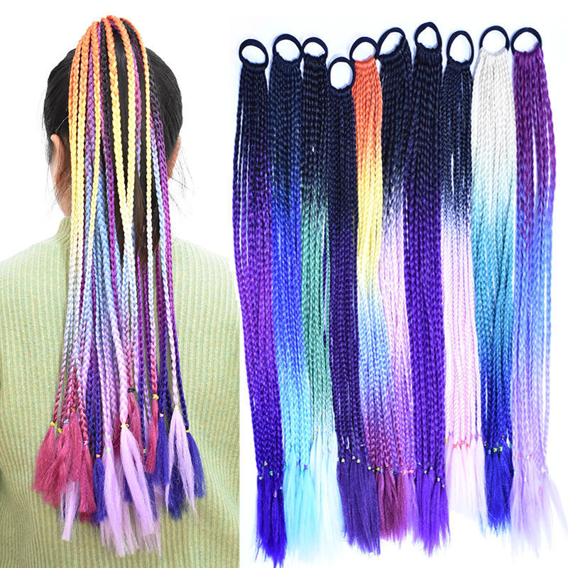 ダーティドレッドウィッグポニーテールカラーグラデーション編み込み子供用ウィッグエスニックスタイルゴムバンドツイスト三つ編み
