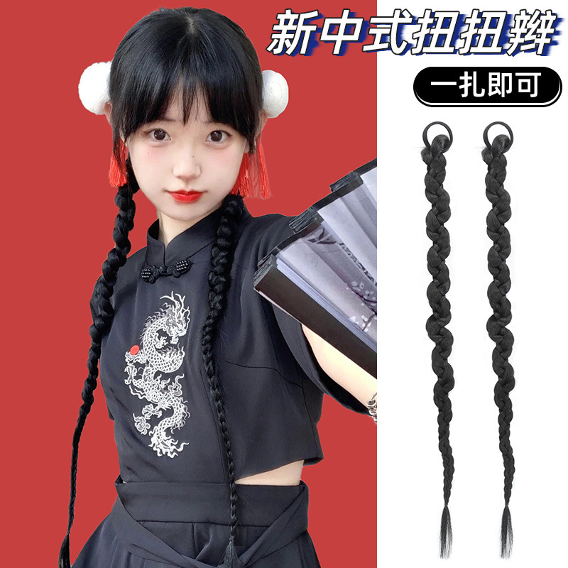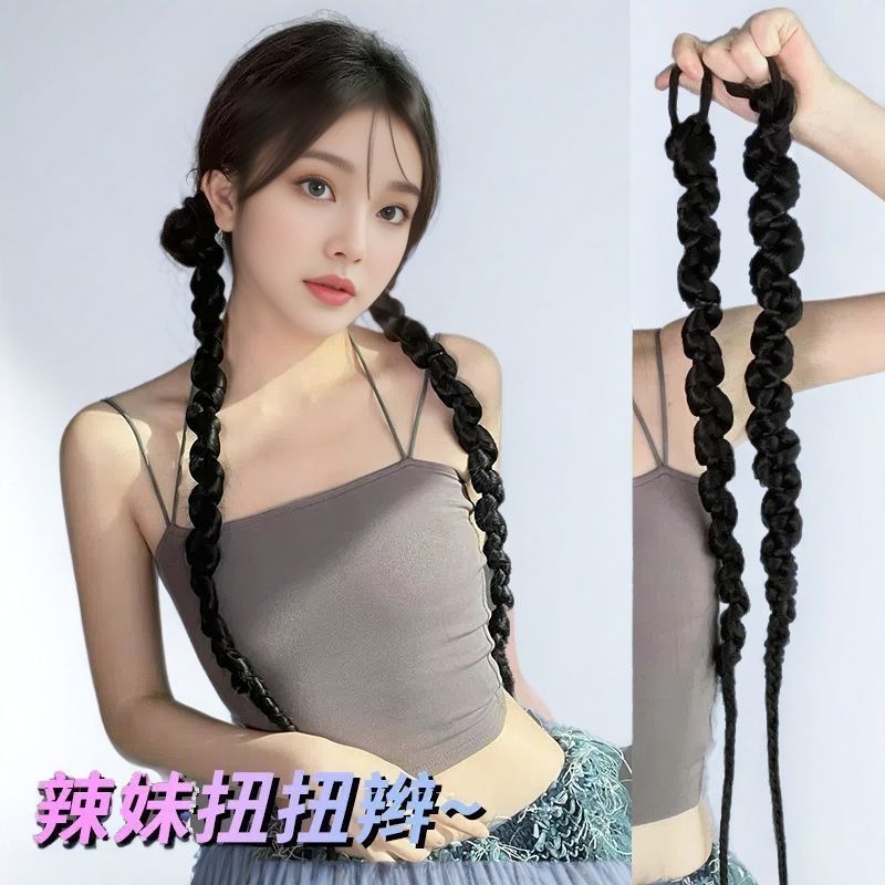 女性用ウィッグ、ポニーテール、模擬ツイスト三つ編み、ヨーロッパとアメリカンスタイルのボクシングツイストロング三つ編み、ネットセレブの甘くてクールなホットガールバブル三つ編み