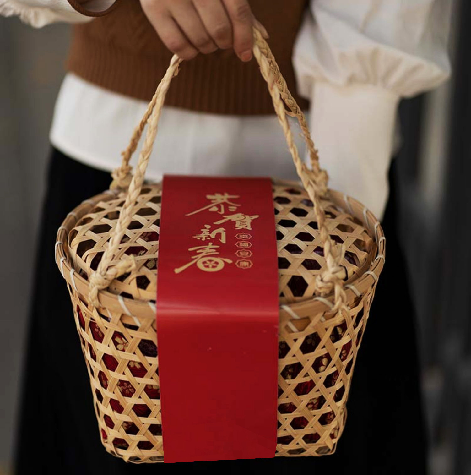 中国式のおせちドライナッツ包装バスケット国風旧正月焙煎菓子雪花ショートニング新年手提げバスケット