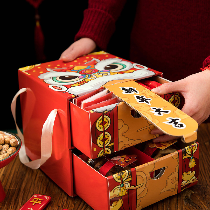 新年礼箱包装2023ビスケット雪花ショートニングキャンディー手提げ箱食品間食焙煎包装二重