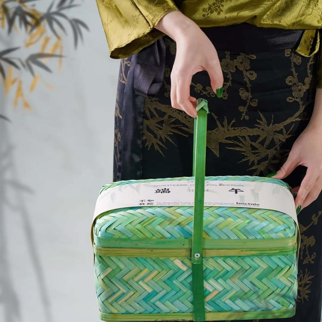 2025 端午節竹かごポータブルギフトボックス団子包装箱塩漬けアヒルの卵肉団子特選茶ギフトボックス