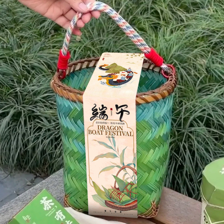 2025新型端午礼箱包装箱端陽竹編手提げかご茶葉ちまき包装咸鴨卵ギフトボックス
