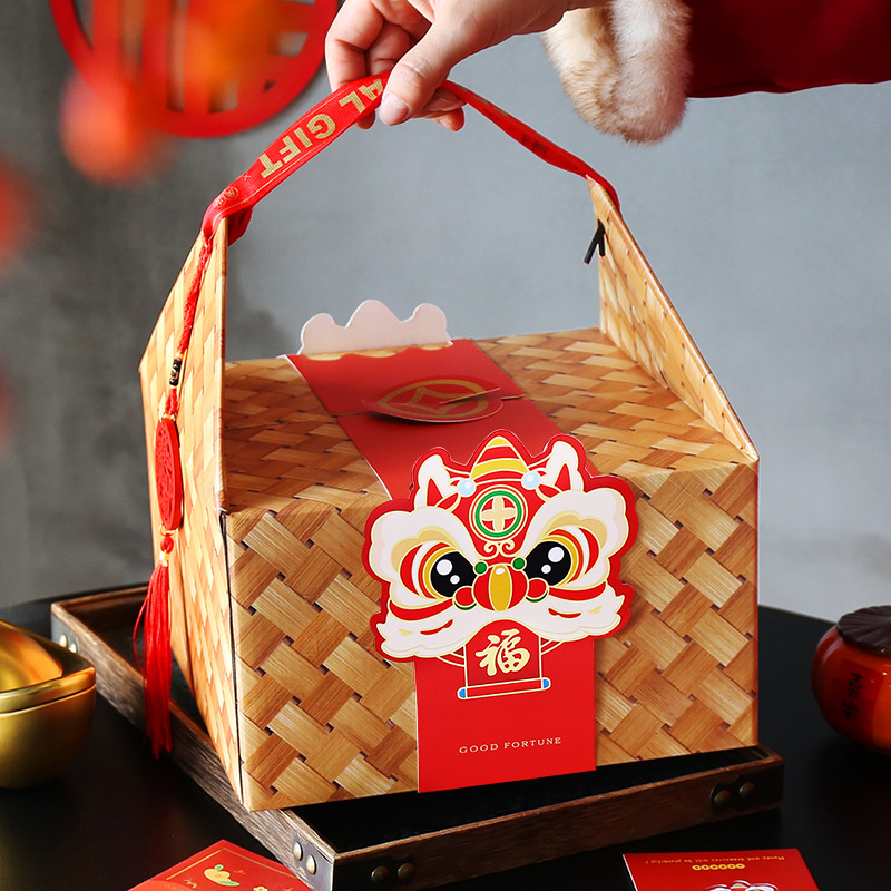 新年包装紙箱プレゼント箱ビスケットナッツ年物お土産2025蛇年に竹編みのプレゼントをプレゼントします。