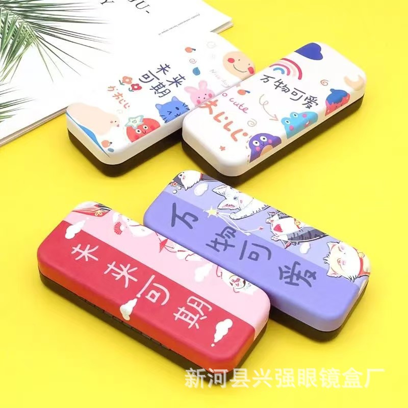 工場現物新型メガネケース鉄ケースファッション子供メガネケース学生フレーム近視メガネケース鉄ケース