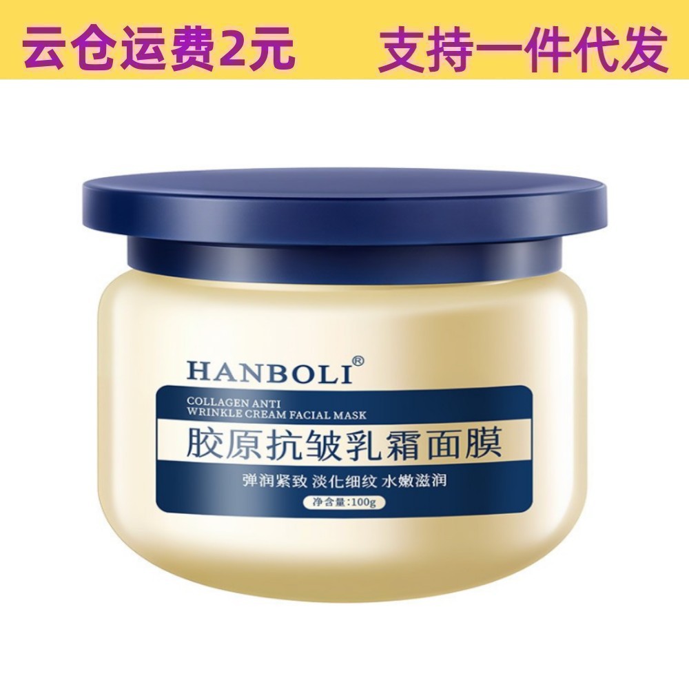 Hanboli コラーゲン抗シワクリームマスク水分補給、保湿、引き締め、乾燥改善、保湿、洗い流さないマスク