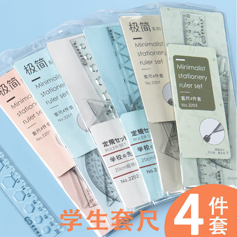 学生ジャケット定規4点セット直尺20cm三角板セット定規測定器多機能小学生マカロン