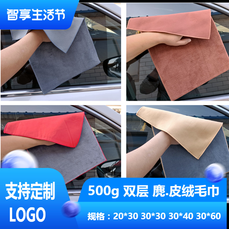 A500g両面鹿皮パイルタオル強吸水スエードガラス拭き車布内装清掃用品洗車布