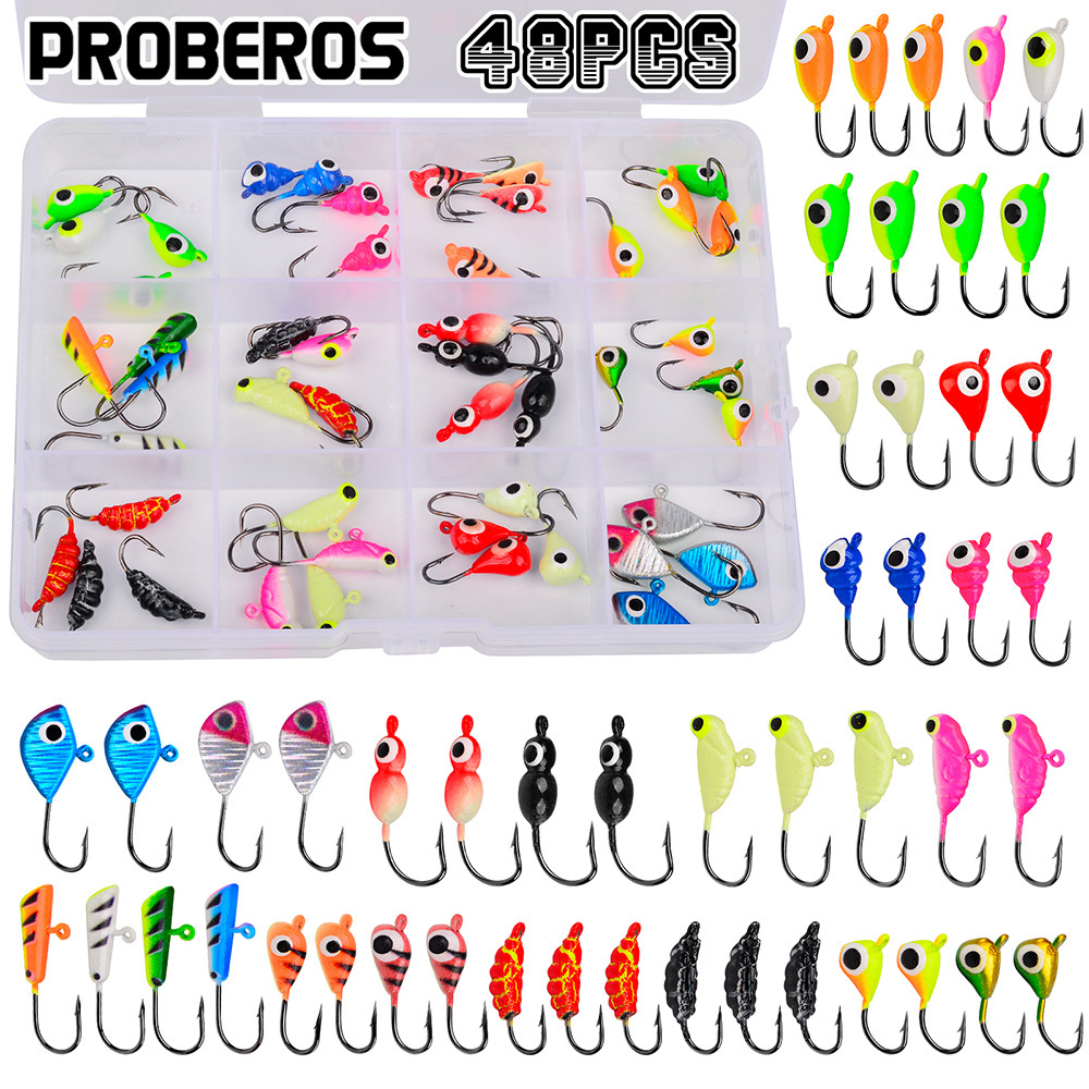 鉛フックセット路亜微物氷釣りフック夜光根釣りフック蚕さなぎミニ鉛フック冬釣りフック48pcs