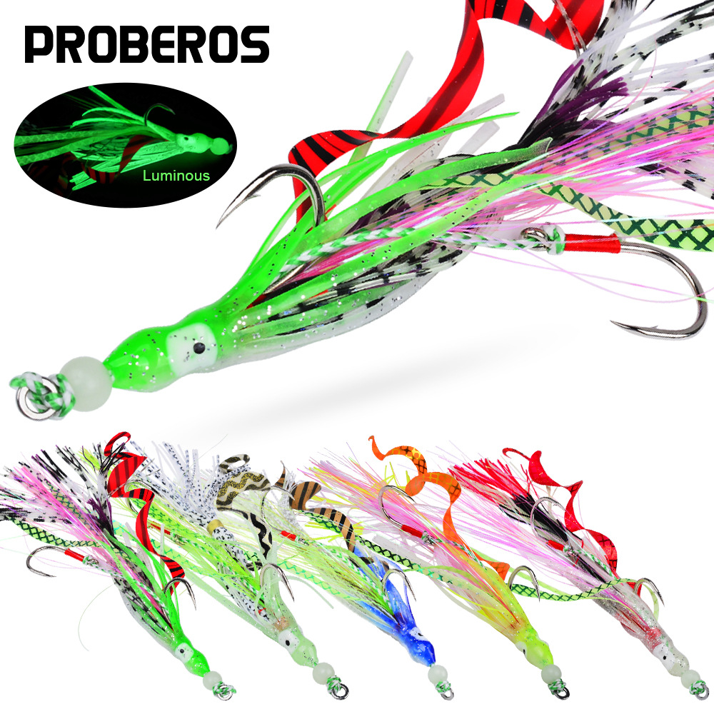 発光鉄板鉛魚ダブルフックタコ串フック海釣りボート釣りスローシェイクイカフック 17 センチメートルシーバスルアー餌