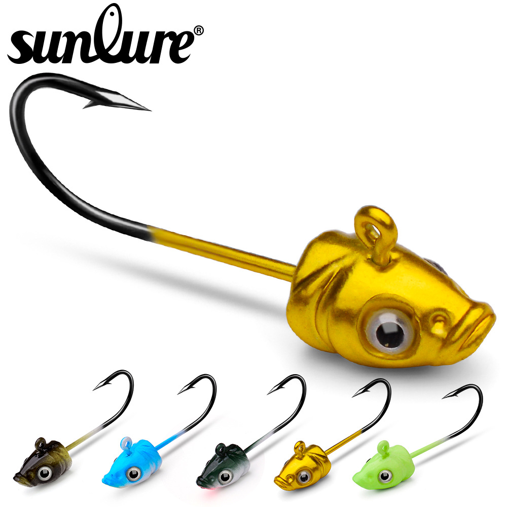 魚の頭の鉛の頭のフックの5色の路亜の鉛の頭のフックは底の柔らかい餌のバランスのフックの3.5g 5g 7g jig釣り針を掛けません。