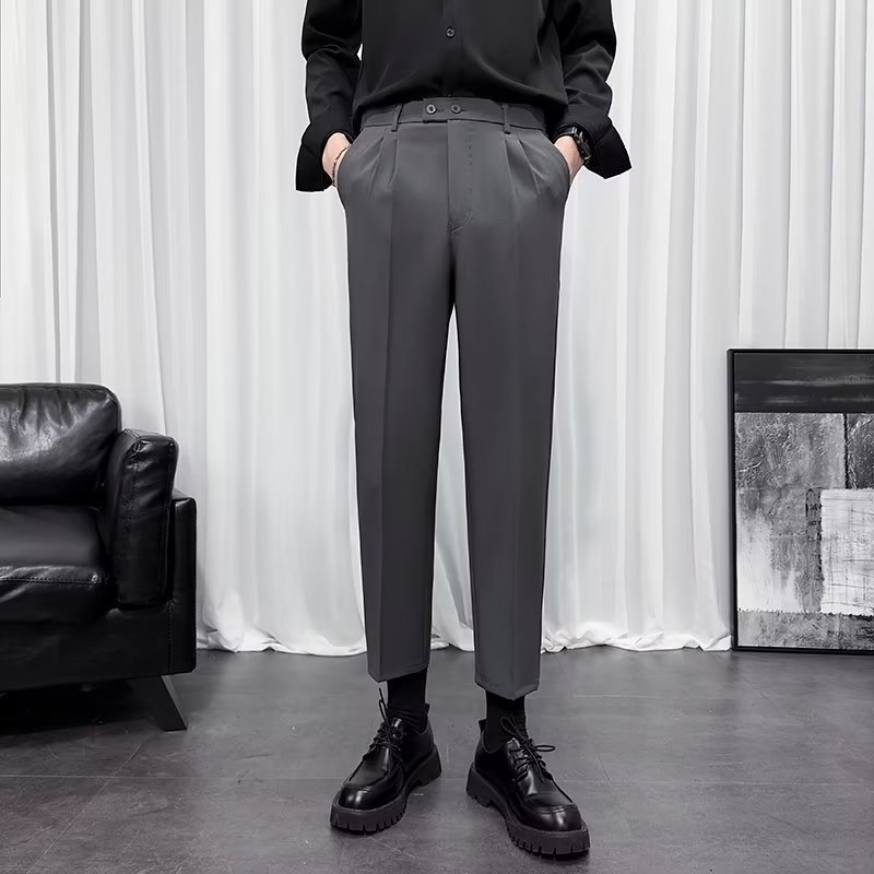 カジュアルなズボンの男性の秋の新型の百合のズボンのまっすぐな筒の修身のスーツのズボンのファッションの春と秋の垂感の小さいズボンの男