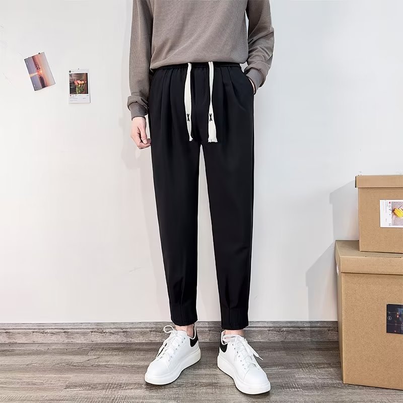 ズボンの男性の夏の韓国版のファッションの薄いタイプのズボンの男性のカジュアルな垂れ下がった感のズボンの9分のズボンの男性の春秋のゆったりしているストレートなズボン