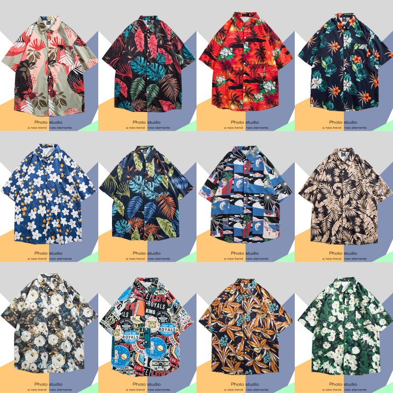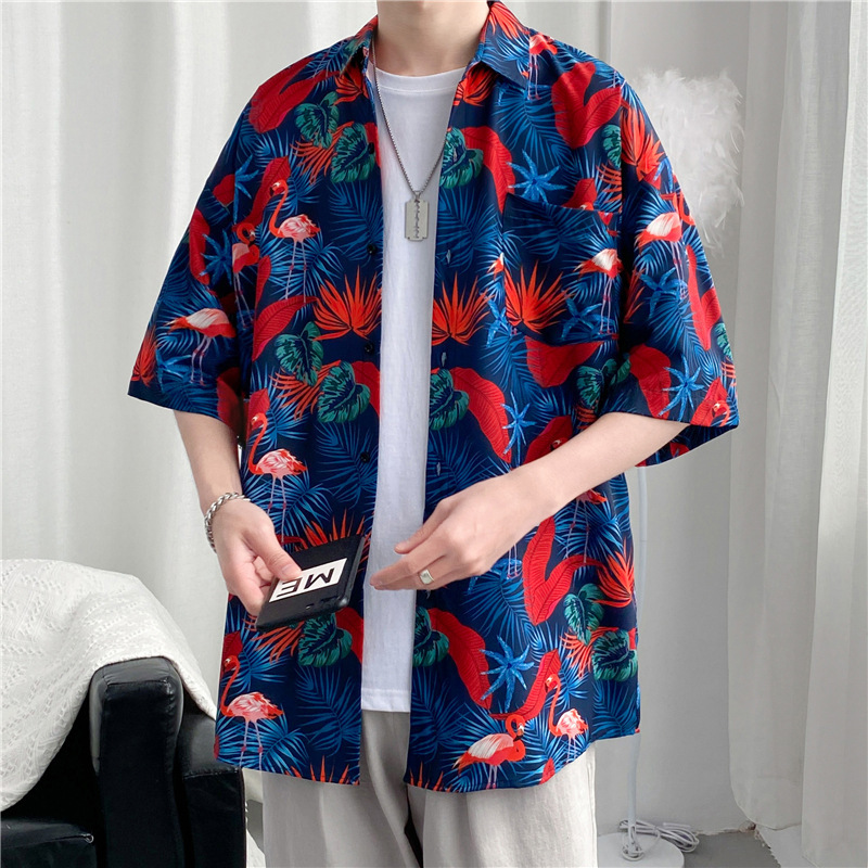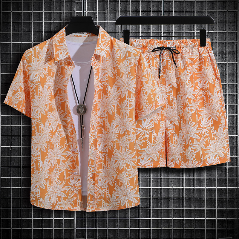 夏の日系花シャツ男性ins港風カジュアルゆったりハワイ半袖シャツビーチセット