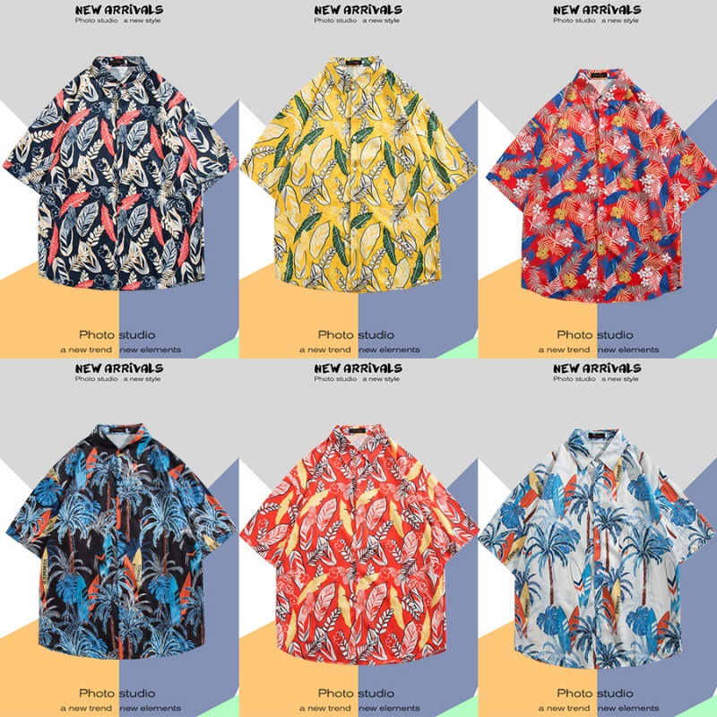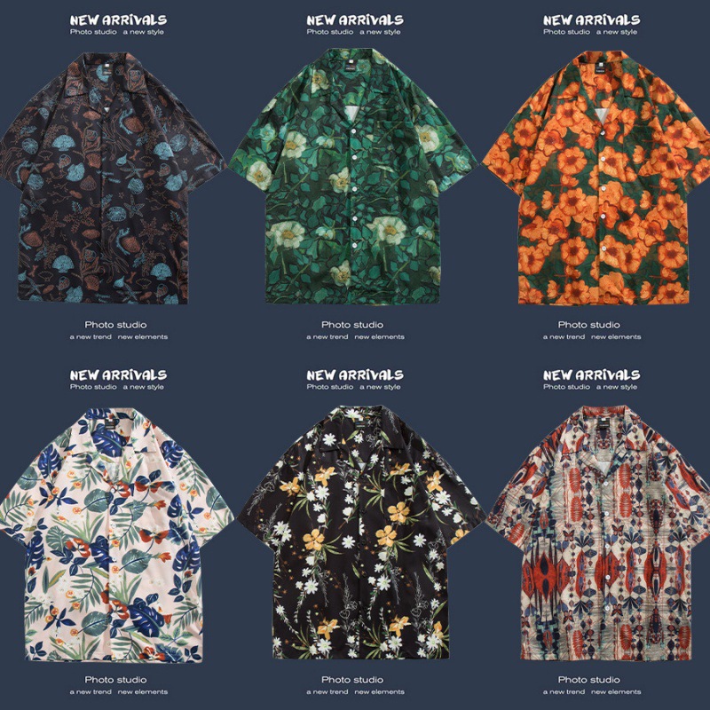 潮牌日系ハワイ花シャツ半袖男夏ゆるいカジュアル大きいサイズビーチ花シャツ薄いコート