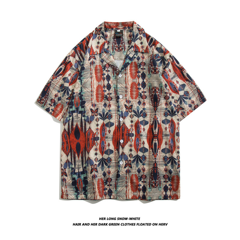 香港味chiレトロビーチリゾート風ハワイシャツ男女カップルinsゆったり半袖シャツ潮