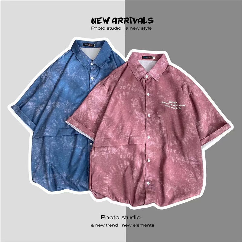 香港風カップル花シャツレトロハワイ風ゆるいビーチスキューバネックシャツ男ins半袖日系