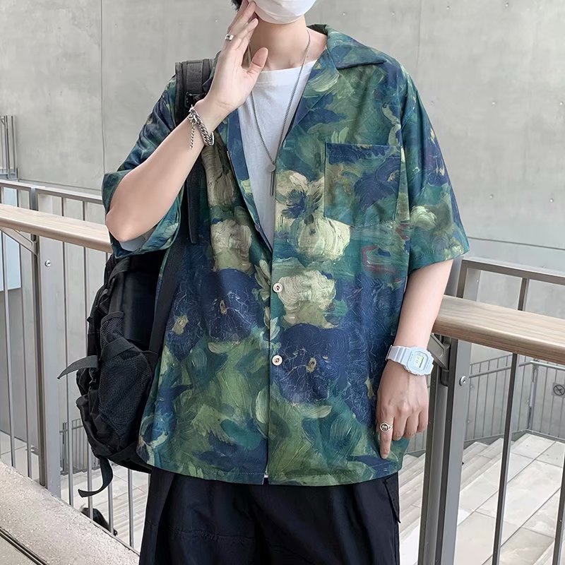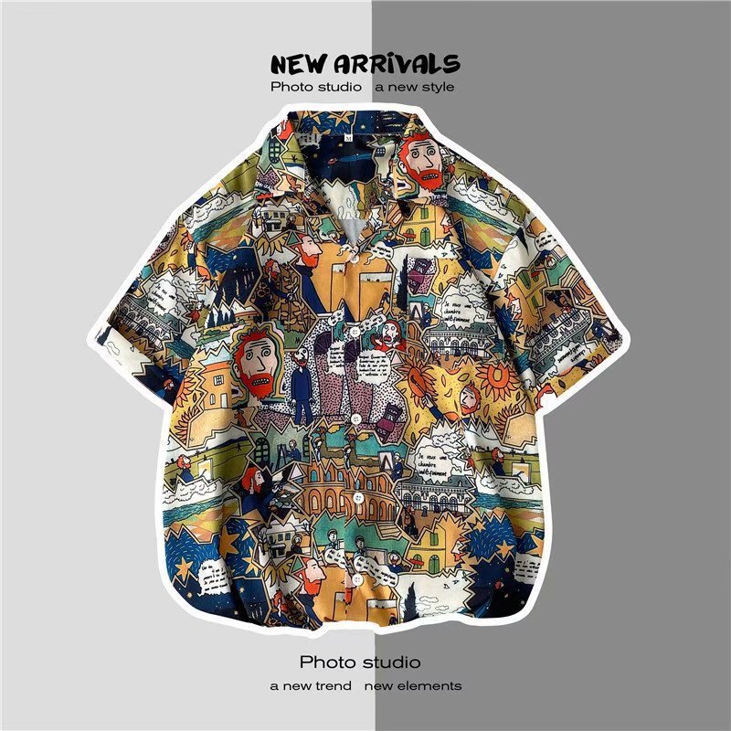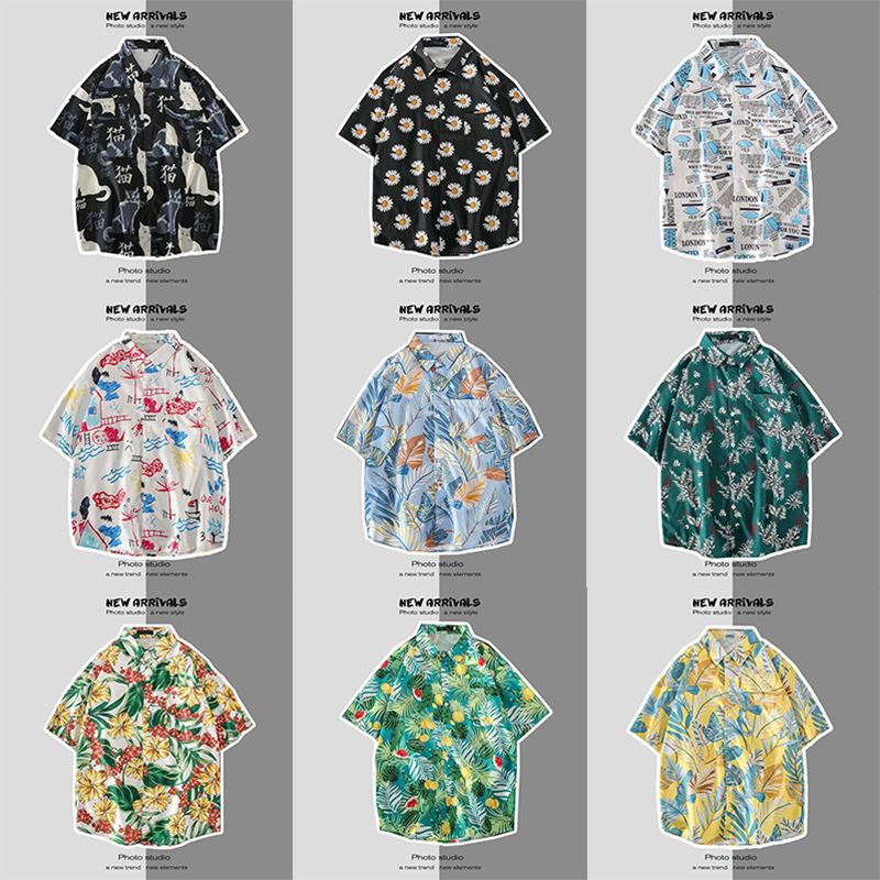 ハワイビーチ花シャツ半袖メンズゆるいins香港風日系レトロなファッションシャツ