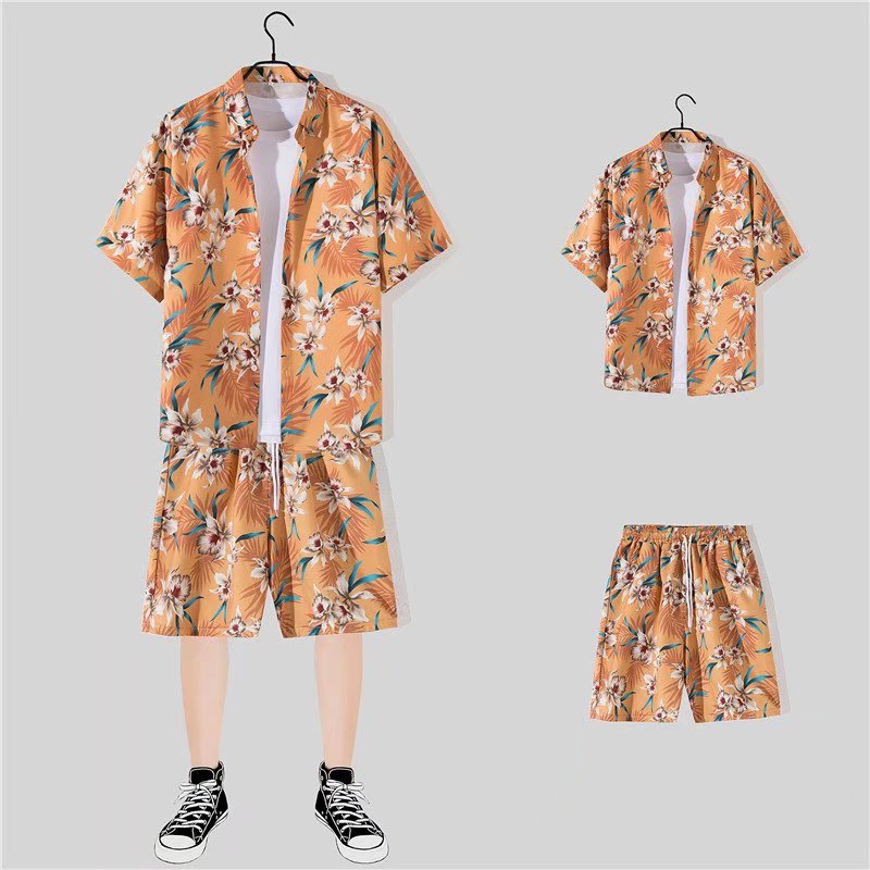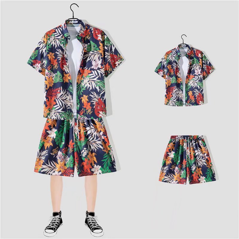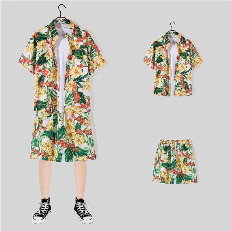 夏の薄手半袖半ズボン花シャツセット三亜ビーチ海辺のリゾートシャツ