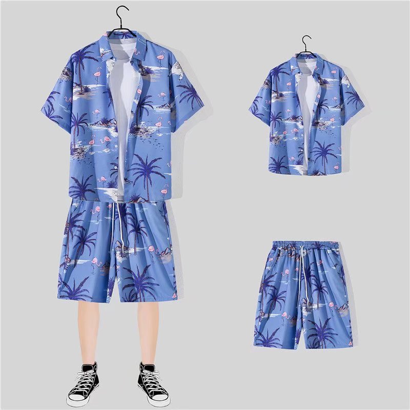 ハワイビーチ海辺シャツセット三亜旅行休暇レジャー二点セット男性大きいサイズ半ズボンシャツ