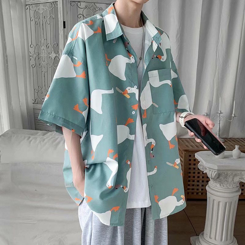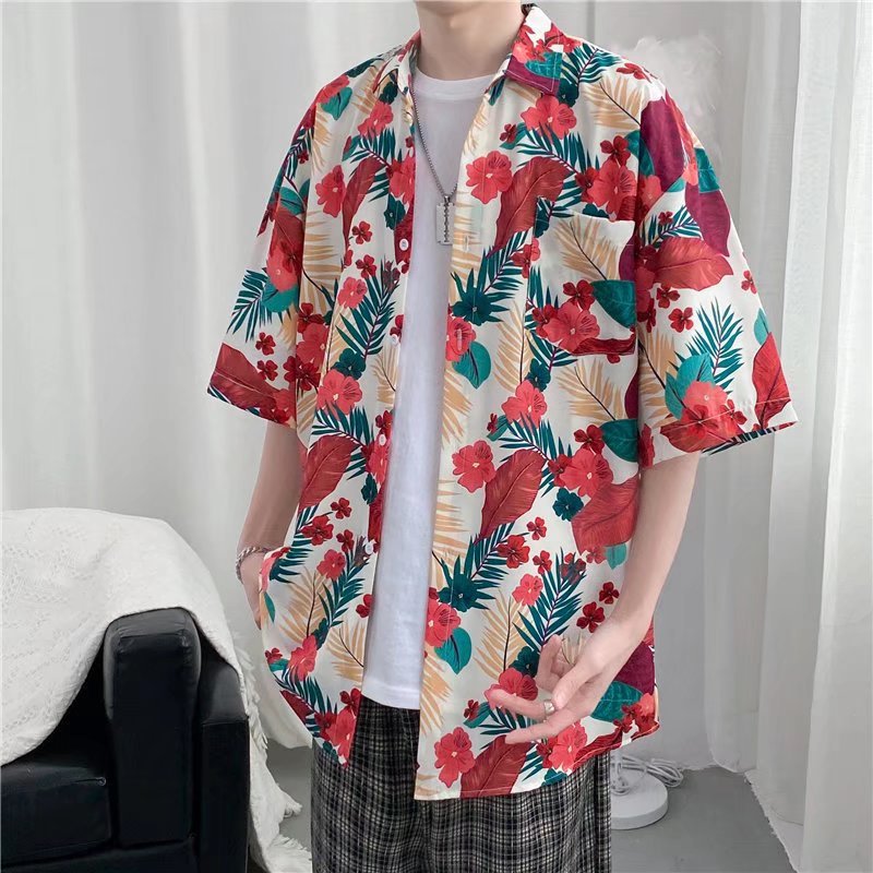 海南島ハワイ花シャツメンズ半袖夏insファッション