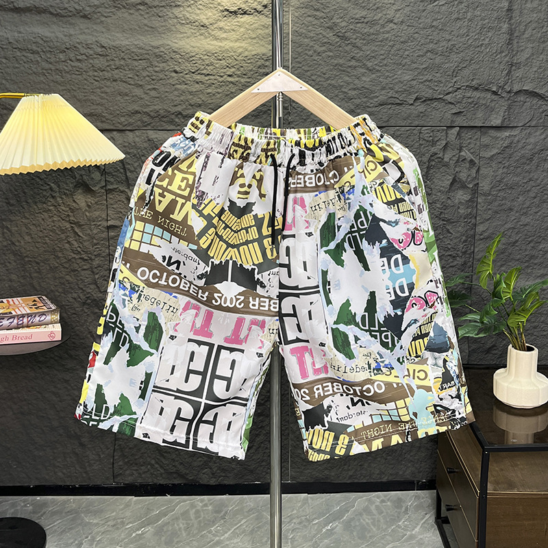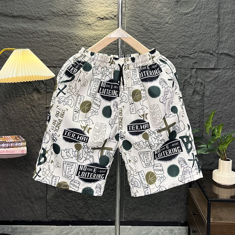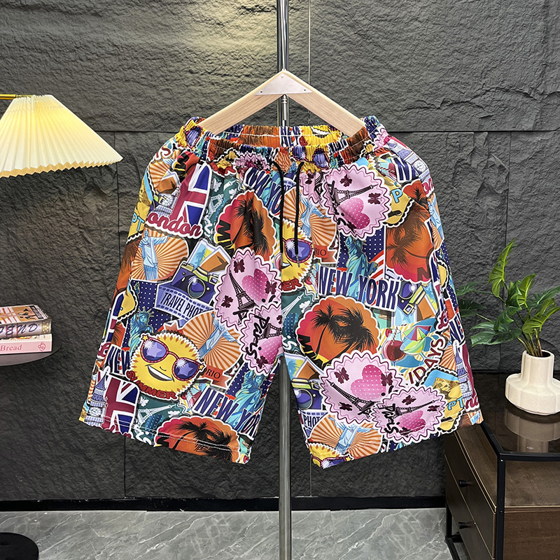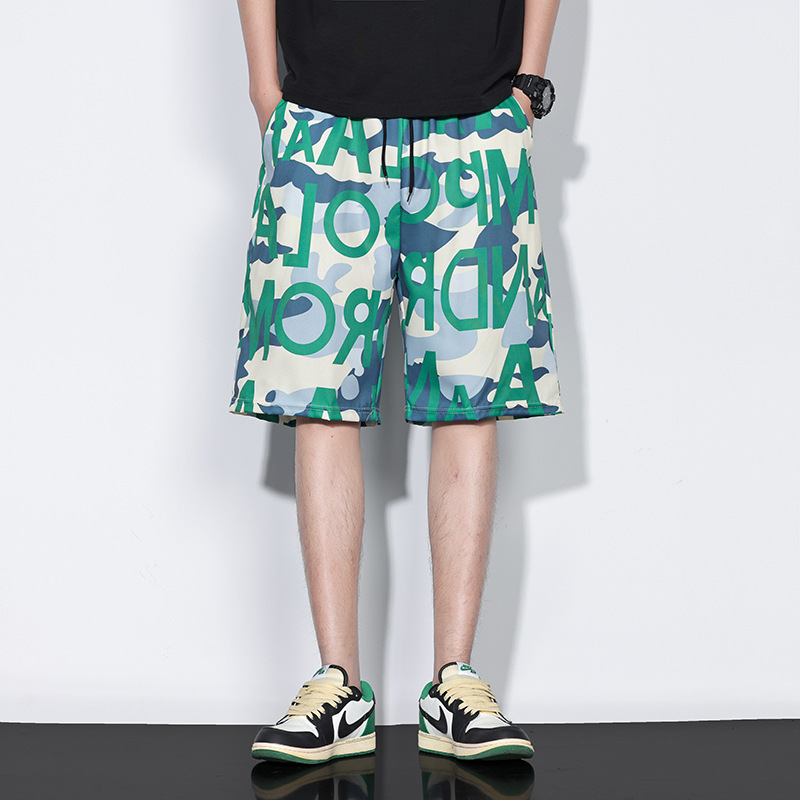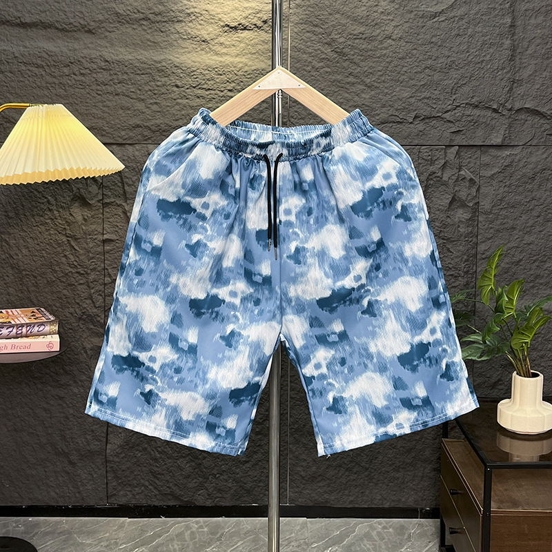 男性の通気速乾四角ズボンのスポーツファッションプリント夏の氷の薄い角の半ズボンのビーチの5分のズボン
