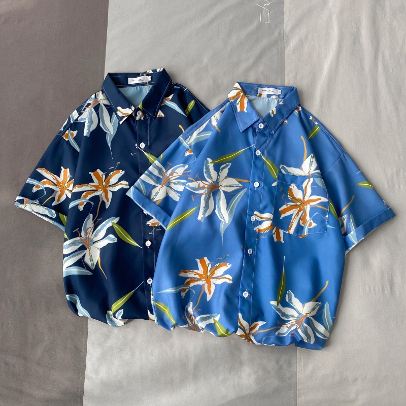 夏の潮牌は半袖の花のシャツの男性の街頭のゆったりしているカップルのハワイの風のファッションの百合の花のシャツの潮を印刷します。