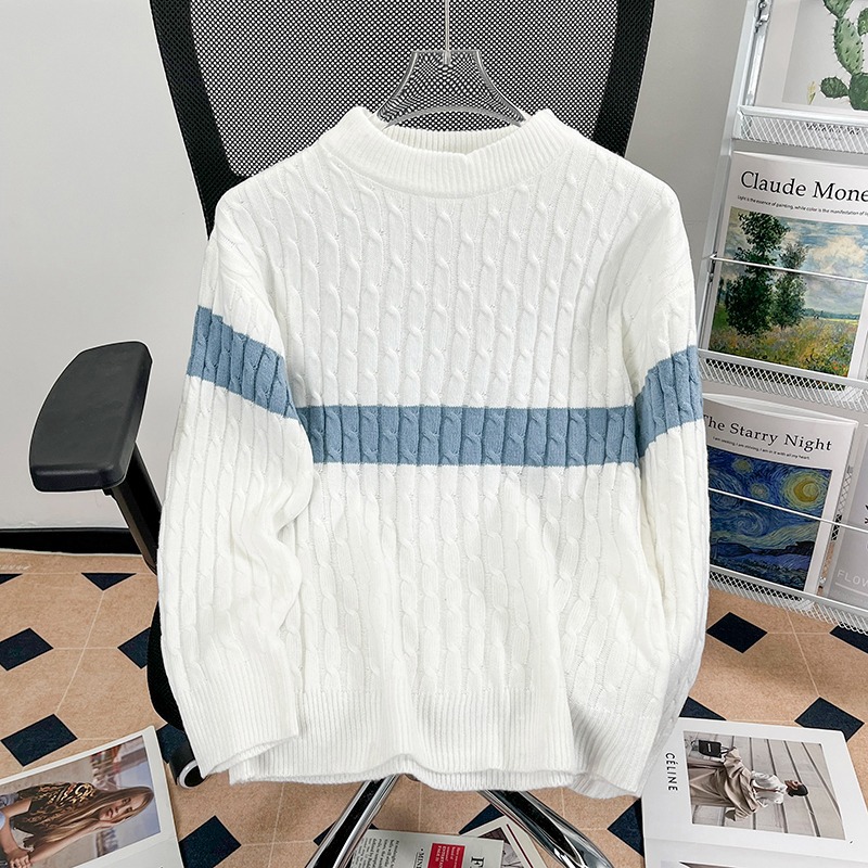 日系复古拼色套头针织外套男秋季潮牌宽松慵懒情侣休闲外穿毛衣