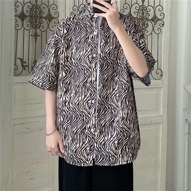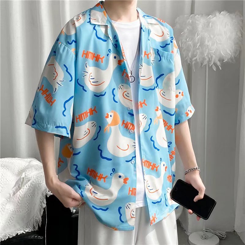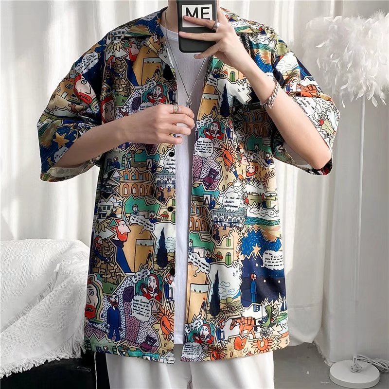 シャツ半袖男ins潮牌夏の薄いタイプのゆるい日系レトロなフルプリントトップスハワイビーチシャツ