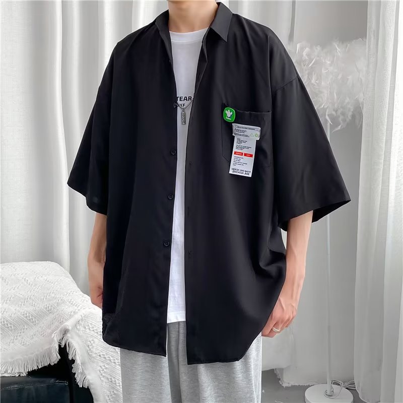 夏の香港風のシャツの男性の工装の半袖の韓国版の潮流の純色のコートのカジュアルなシャツの男性の潮は代行します。