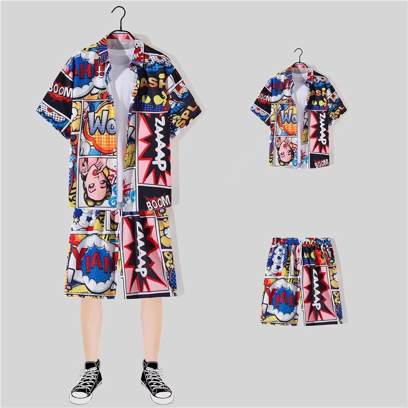 ハワイビーチ花シャツ半袖半ズボンセット夏新作大きいサイズゆったりカジュアル個性プリント
